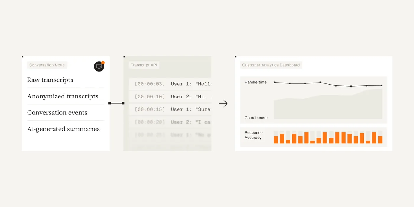 Now generally available, Transcripts API gives teams secure, programmatic access to data from AI agents, including raw transcripts, anonymized transcripts, and AI-generated summaries. It's built for organizations that need full visibility into what's happening inside each interaction, beyond aggregated metrics and summary dashboards.